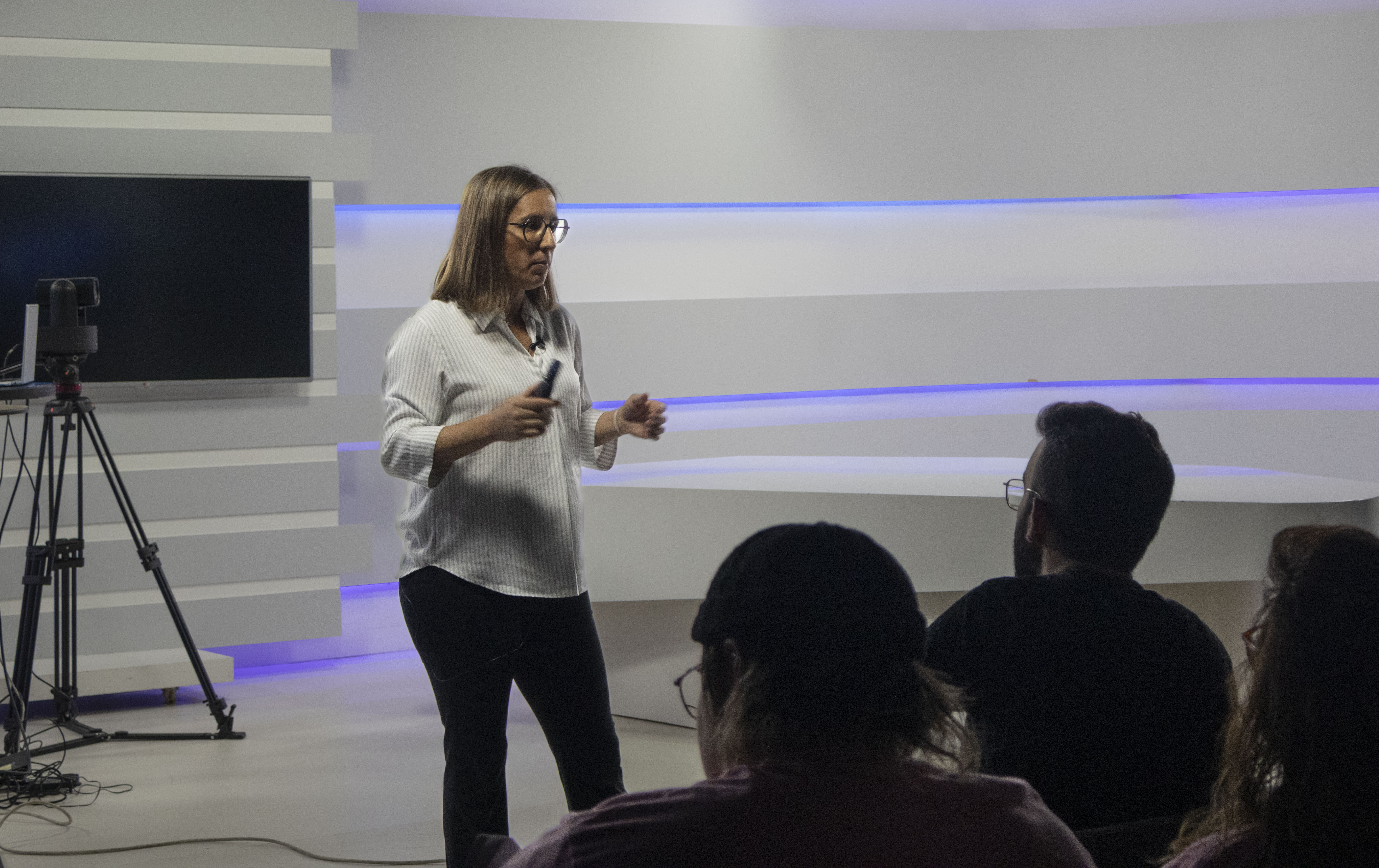 Yhazmina Díaz en el plató de televisión de la Universidad Europea de Madrid. Foto: María García